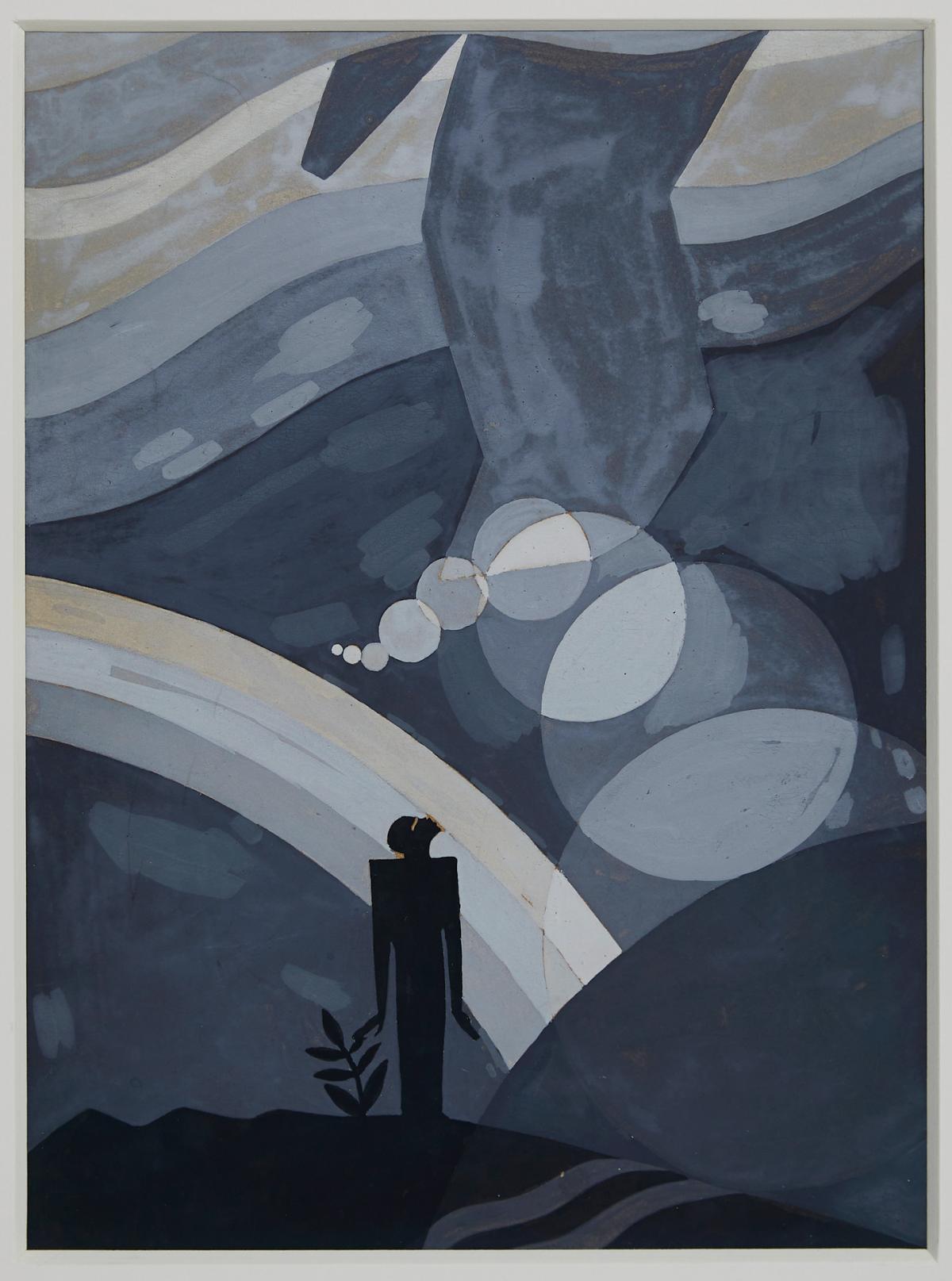 AARON DOUGLAS, “The Creation,” 1927 (gouache with graphite underdrawing on paper, 11 3/4 x 9 inches). | Courtesy SCAD Museum of Art, Gift of Dr. Walter O. Evans and Mrs. Linda J. Evans