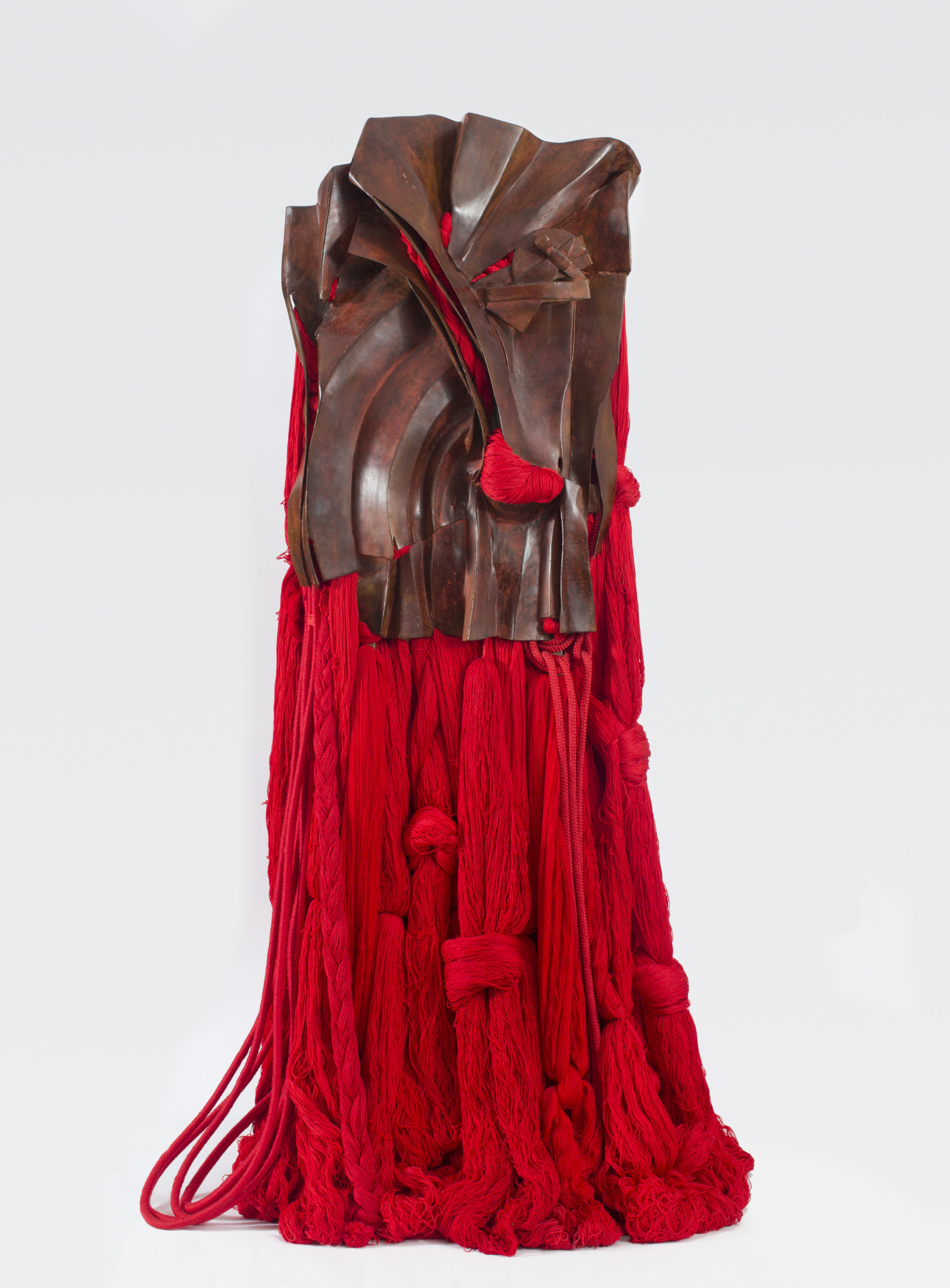 BARBARA CHASE-RIBOUD, “All That Rises Must Converge/Red,” 2008 (bronze, silk, cotton, and synthetic fibers, 74 1/2 x 42 x 28 inches / 189.2 x 106.7 x 72.1). Collection of Roger Ford and Caroline Ford. Photo courtesy of Noel Art Liaison, Inc. © Barbara Chase-Riboud