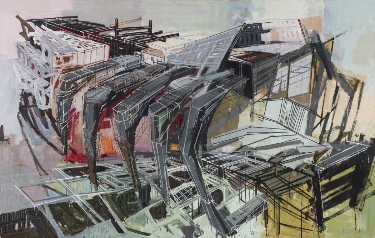 DENYSE THOMASOS, “Metropolis,” 2007 (acrylic, charcoal, porous-point marker on canvas, unframed: 214 x 335.6 x 3.5 cm). | Art Gallery of Ontario. Purchased with the assistance of the Toronto International Art Fair 2007 Opening Night Preview, and with the Financial Support of the Canada Council for the Arts Acquisition Assistance Program, 2008. © The Estate of Denyse Thomasos and Olga Korper Gallery. 2007/241