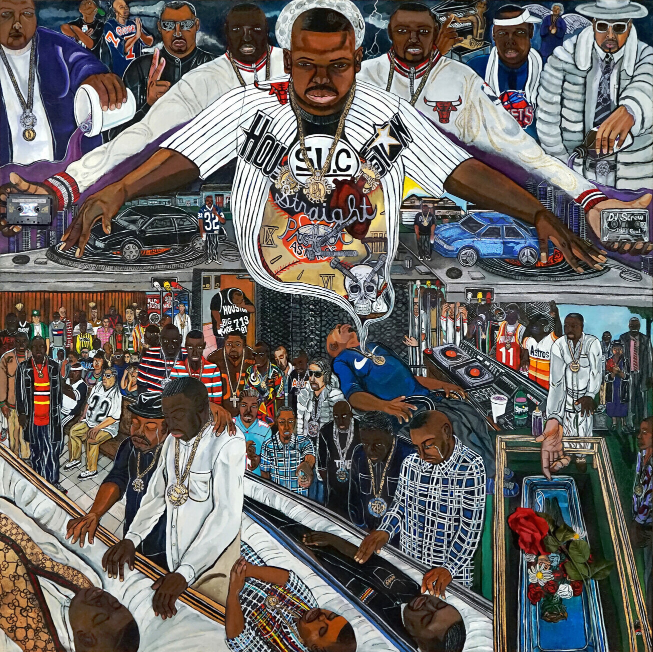 EL FRANCO LEE II, “DJ Screw in Heaven 2,” 2016 (acrylic on black canvas with cassette tape, 60 x 60 x 1 inches). | © El Franco Lee II, Courtesy of the artist