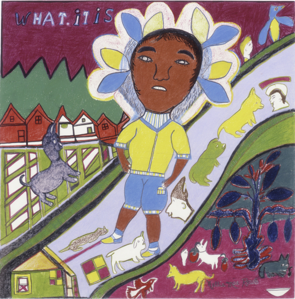 NELLIE MAE ROWE (American, 1900–1982), “What It Is,” 1978–82 (crayon, colored pencil, pencil on paper, 21 × 21 1/4 inches / 53.3 × 54 cm). | High Museum of Art, Gift of Judith Alexander, 2003.215. © 2022 Estate of Nellie Mae Rowe/Artists Rights Society (ARS), New York. Photo: © High Museum of Art, Atlanta