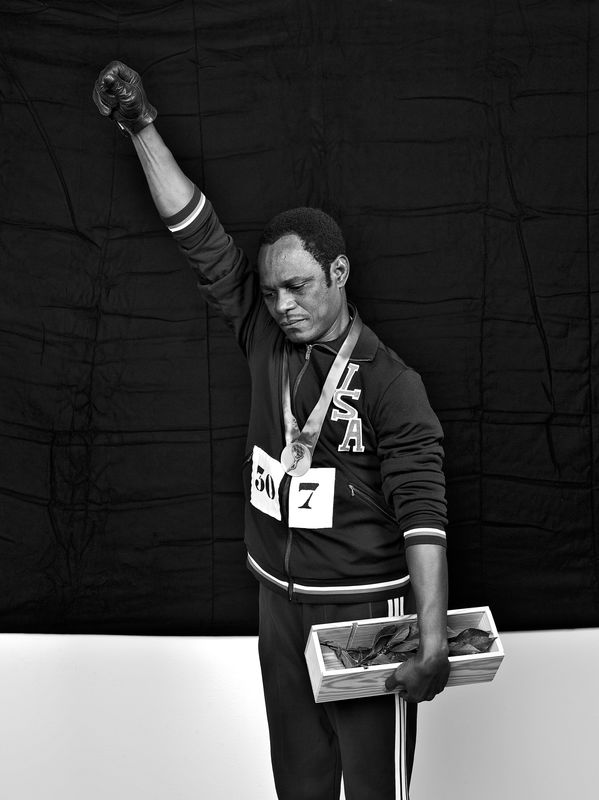 SAMUEL FOSSO, “Self-portrait (Tommie Smith),” 2008 (Gelatin silver print, 103.7 × 77.9 × 4.5 cm). | © Samuel Fosso, The Walther Collection