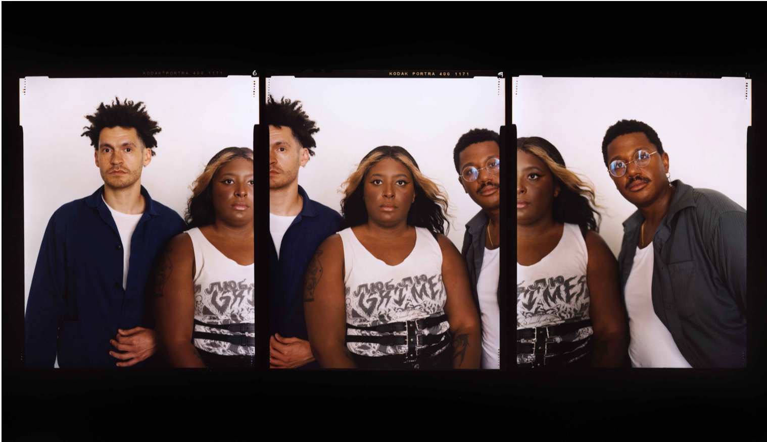 From left, Studio Museum in Harlem 2021⁠–22 artists in residence Jacob Mason-Macklin, Qualeasha Wood, and Cameron Granger, 2022. | Photo by Jeremy Grier, Courtesy Studio Museum in Harlem