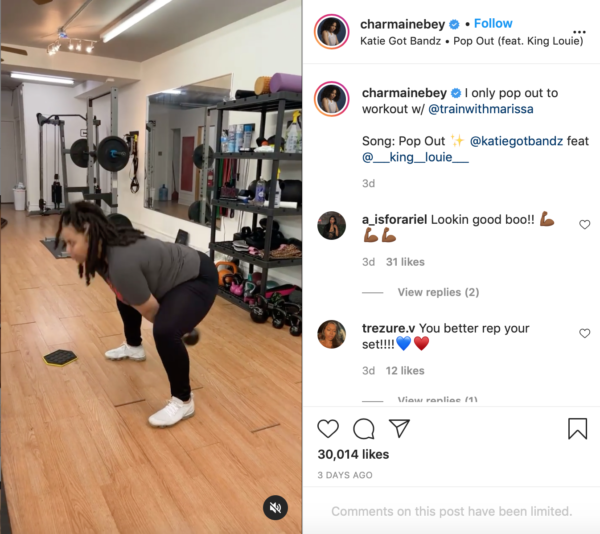 Charmaine Bey may not go out like she used to, but that’s not stopping the “Black Ink Crew: Chicago” star from going in on her workouts.