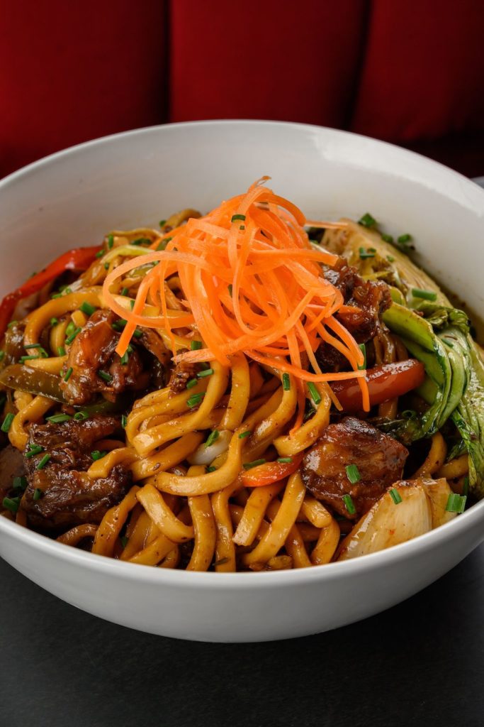 Innis says that while all the dishes on the menu are great, his top three are the lamb Suya chops (3 spiced Suya lamb chops grilled to desirable temperature topped with slice red onions and charred tomatoes), Oxtail lo-mein (Braised oxtail pulled off the bone with sautéed vegetables including baby bok choy, cambray onions, green and red bell peppers; mixed with lo-mein noodles tossed in soy sauce, sesame oil, brown sugar, oxtail gravy then topped with green onions), and the escovitch whole lobster stuffed with saltfish and ackee and served with plantain festival.