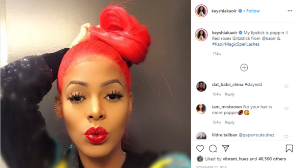 The beauty entrepreneur may have a blemish-free face, but it doesn’t seem she will be putting her makeup away anytime soon. Ka’oir launched her makeup line, Ka’oir Cosmetics, in 2010 and takes credit for making bold- colored lipsticks a fashion trend. “What’s crazy is I started my line in 2010, and I’m the one who started the whole blue lipstick and the glitter lipstick trend,” she said in an interview with Essence. Ka’oir explained that she will always be a trendsetter and takes pride in the fact that her businesses continue to grow.