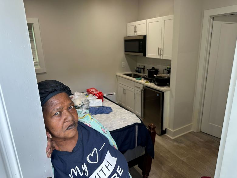 Loretta Hayes, 68, lives in a small Grove Park Renewal unit that she says only has one door to enter and exit the dwelling and limited kitchen facilities.